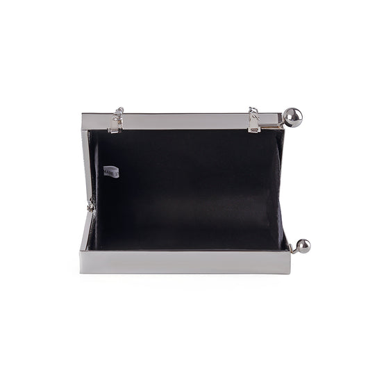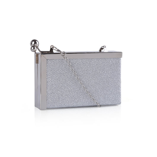 Metal Framed Side Ball Clasp Box Clutch Bag - Silver