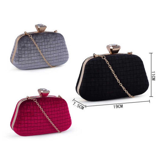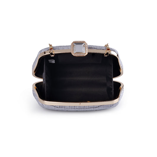 Velvet Textured Box Bag With Large Diamante Clasp - Grey